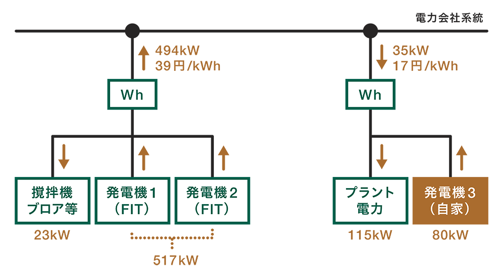 プラント内の余剰ガスの有効利用を図る為、プラント内に売電の発電機と別に、自家消費用発電機を設置。全国でも珍しいブラックアウトスタートを実現し、災害時でもプラント機能を維持できるようにしています。さらに近所の避難所へも発電機を設置し、非常時にバイオガスを運搬し電力供給を実現、バイオガスを地域で利用する取り組みを進めました。